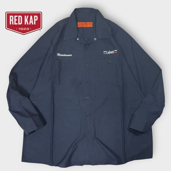 - ★BIGサイズ★Labattロゴ刺繍★RED KAP長袖ワークシャツ sizeXXL 上部スナップボタン レッドキャップ 古着 クリーニング プレス済み 2485