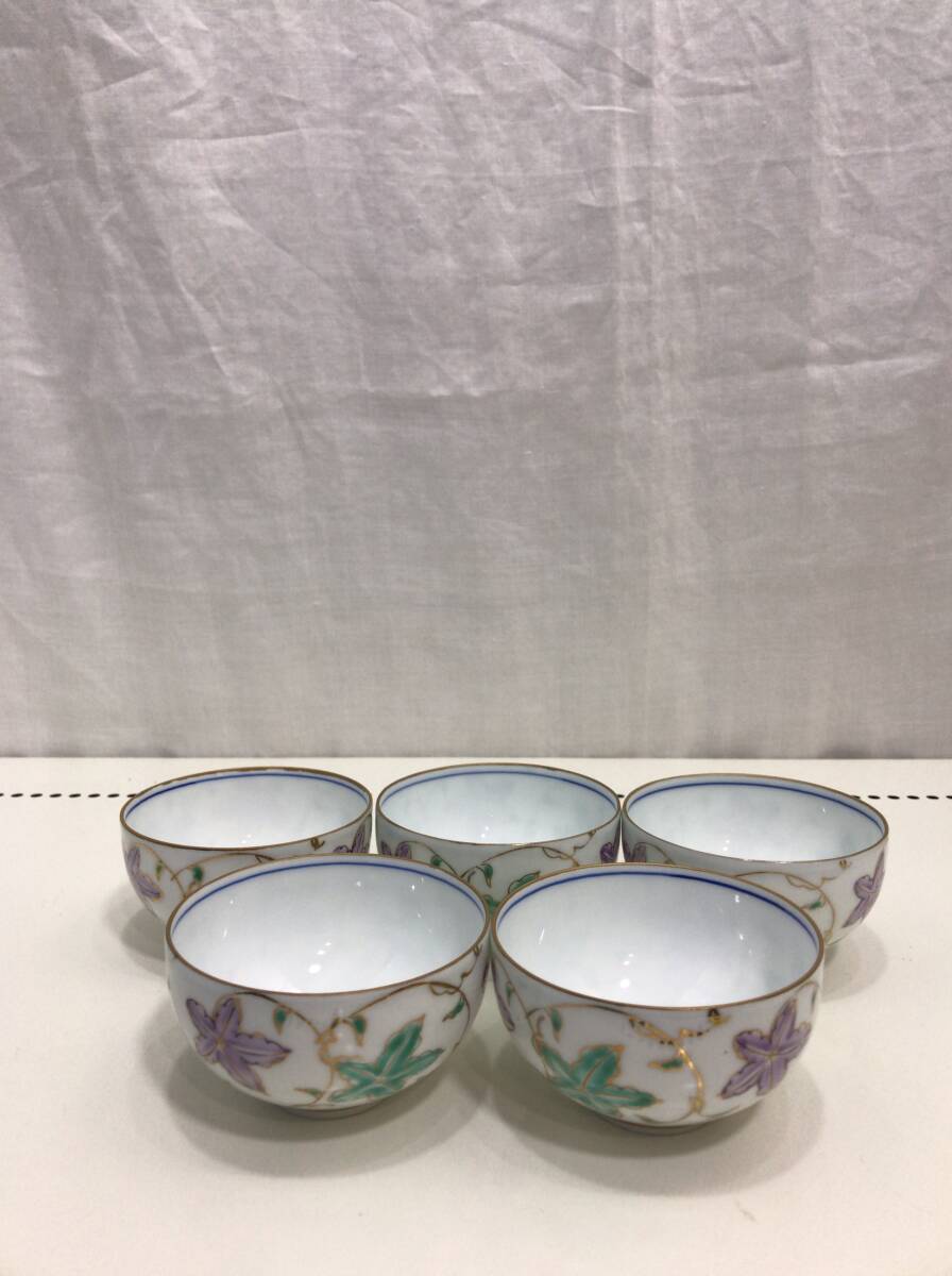 - 有田焼 湯呑 葉山 ホワイト 花柄 5客セット R