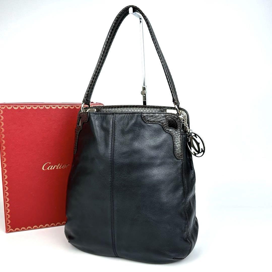 - 美品 Cartier カルティエ マルチェロ トートバッグ ワンショルダー マストライン チャーム シルバー金具 パイソン リザード フォーマル 黒