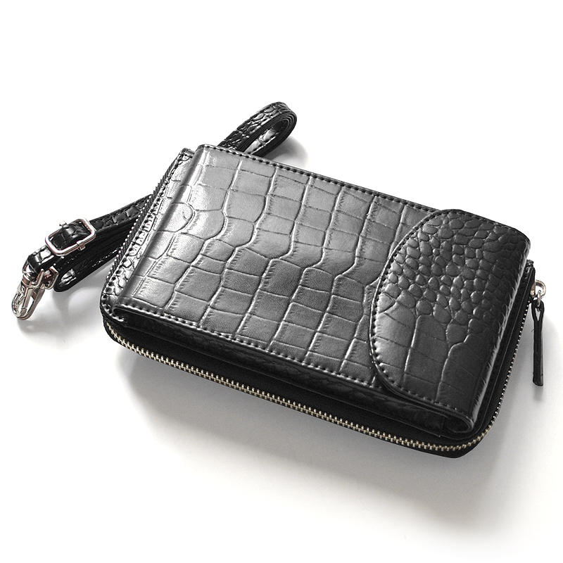 - 牛革クロコ型押し財布機能付きスマートフォンポーチ No.3170■レディースカラバリ牛革ポーチ ブラック×1個
