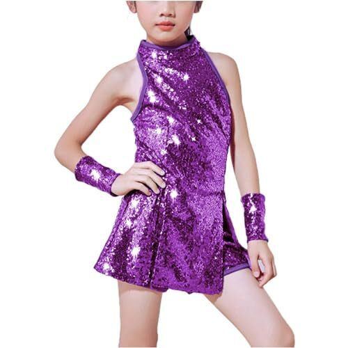 - LOLANTA ダンス衣装 キッズ スパンコール キラキラ ヒップホップダンス 服 子供 4点セット パープル 120
