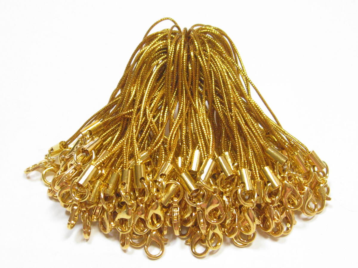 - カニカン付 ストラップ ヒモ ゴールド×ゴールド 100本