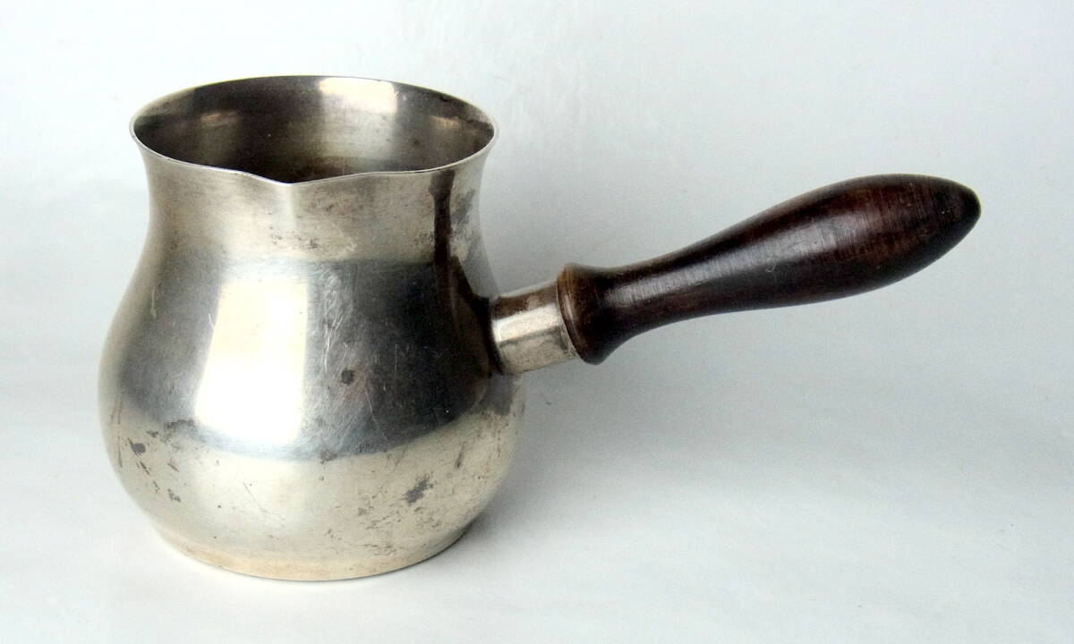 - アンティーク 純銀 スターリングシルバー ウッドハンドル付きポット バターパン クリーマー 木製把手 西洋骨董 クロネコ宅急便発送