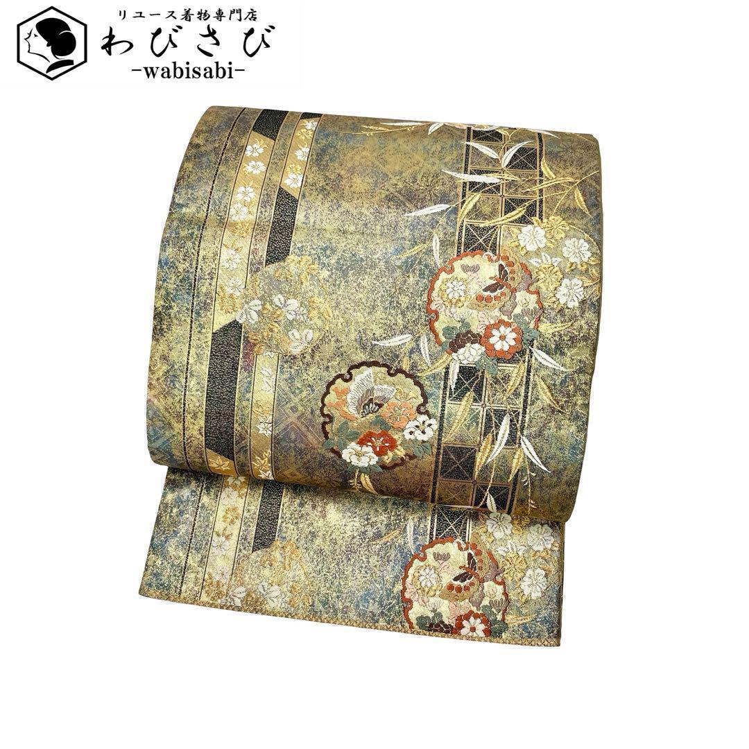 > 袋帯 雪輪に蝶々花模様 引き箔 金糸 O-3865 着物 きもの kimono 和服 和装 中古 リサイクル着物 【送料無料】