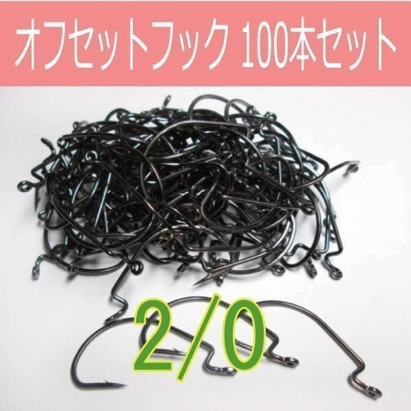 - 【 送料無料 】オフセットフック Offset hook 2/0 100本セット ワームフック ワーム針 サイズ9種類(#6~5/0)∩