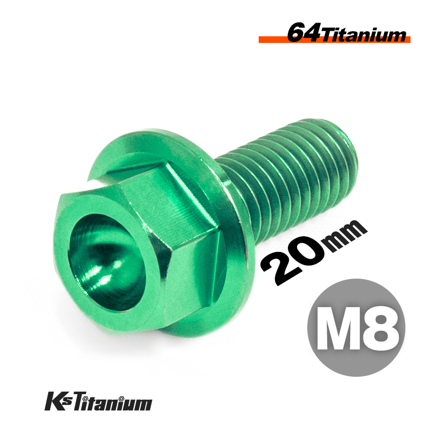 > チタンボルト M8×20 P1.25 グリーン 64チタン フランジボルト 全ネジ Ti-6Al-4V チタン合金 バイク パーツ 自転車 軽量