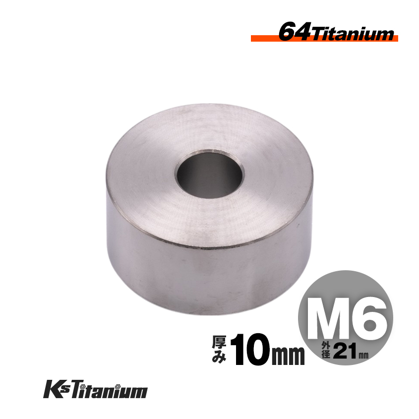 > チタン製 カラー スペーサー M6×21 10mm厚 シルバー 1個売り チタン ワッシャー レストア カスタム ドレスアップ 隙間調整