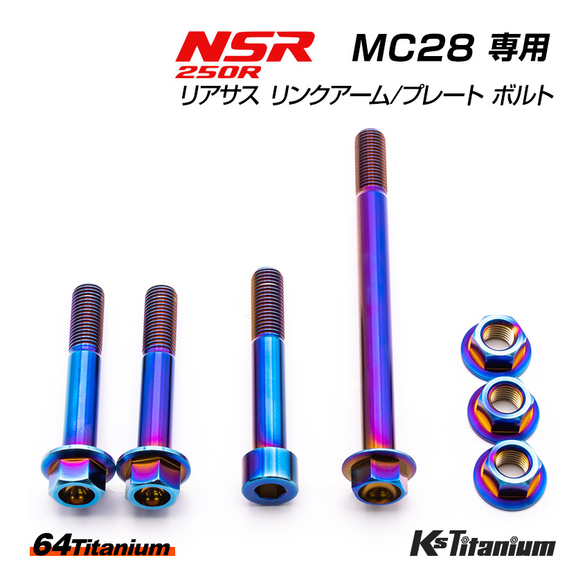 > チタンボルト NSR250R MC28 リアサス リンクプレート リンクアーム リアサス下部 ボルト 7点セット 焼き色 64チタン NSR レストア 軽量化