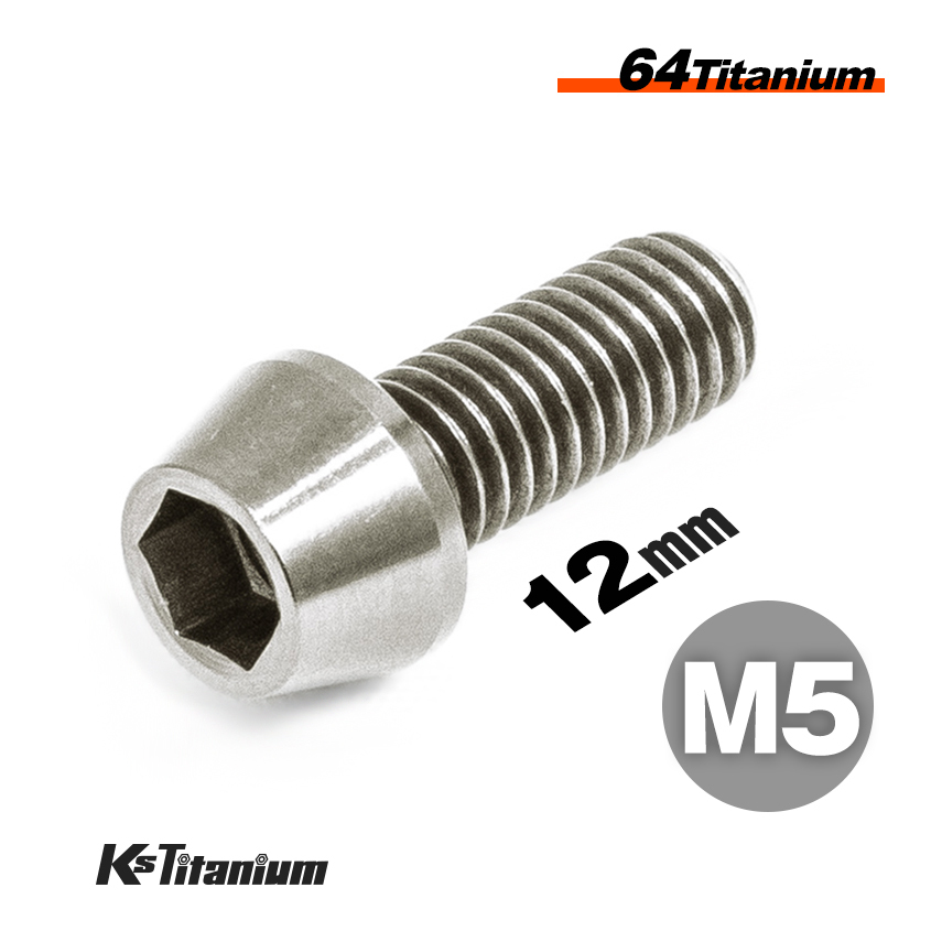 > チタンボルト M5×12 P0.8 チタン無垢色 1本売り 64チタン テーパーボルト スレッド FULL(全ネジ) バイク レストア パーツ