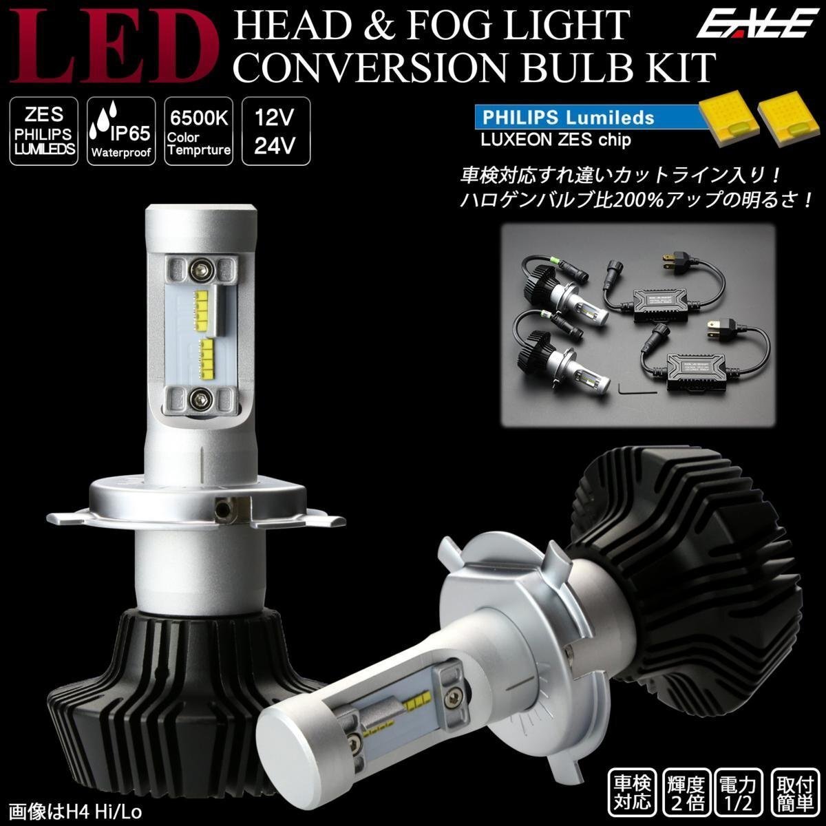 > 車検対応 H1 LED ヘッドライト フォグランプ コンバージョン バルブ 6500K ZESチップ 12V/24V対応 カットライン入り H-91