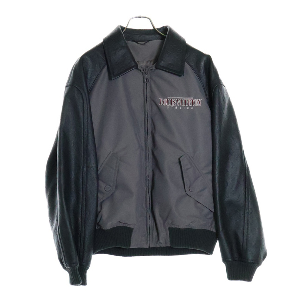 > ルイヴィトン 23AW モノグラム フィルムスタジオ レザー切替バーシティジャケット ブラック/グレーRM232 BQV HPL85E