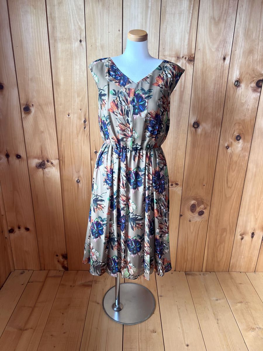 - ANAYI/アナイ/ワンピース/総柄/植物模様/34/S/シルク/裏地付き/ブラウンベージュ/日本製/美品良品