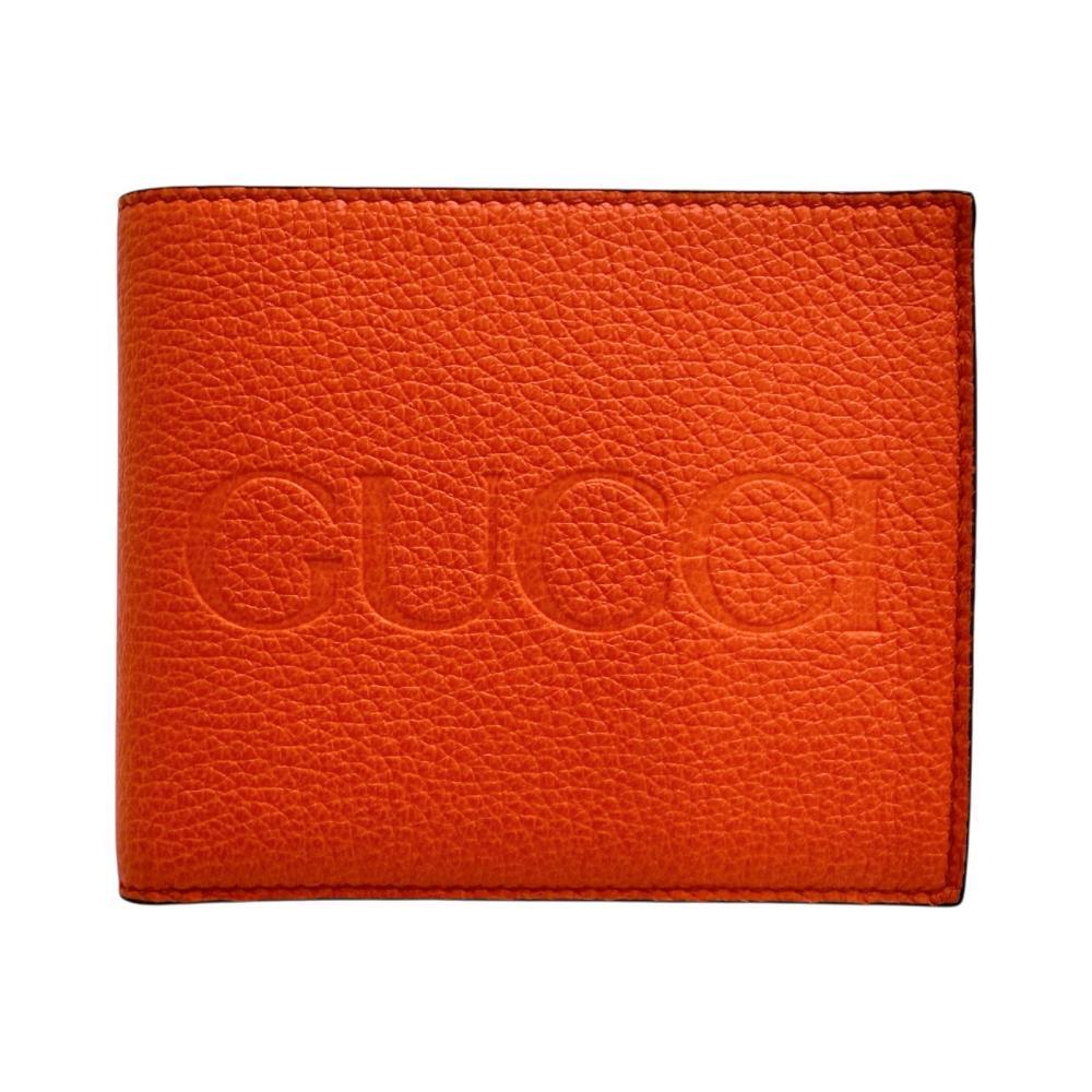- GUCCI/グッチ 653681 ロゴ 二つ折り財布 レザー オレンジ メンズ