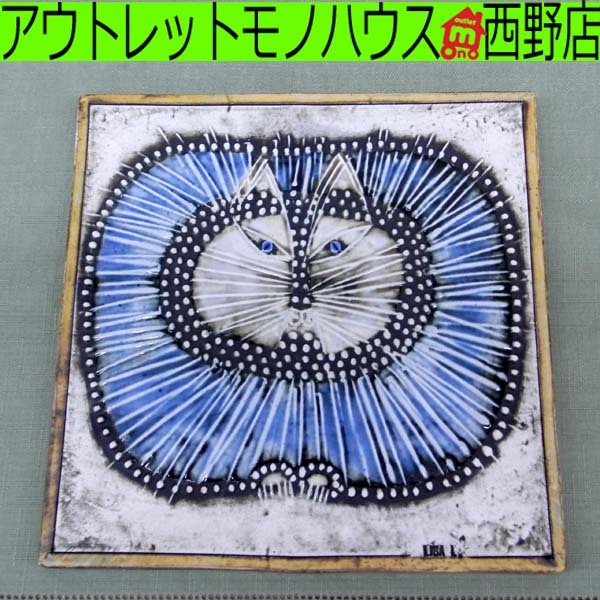 希少 リサラーソン UNIK KATT 陶板 LISA L ウニク 猫 ブルー 陶芸 工芸 置物 オブジェ 札幌 西区 西野