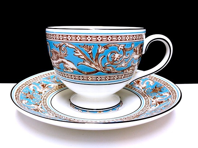 - 3QV売切!税無し☆ウェッジウッド★フロレンティーン ターコイズ★カップ&ソーサー★リー★WEDGWOOD★黒壺印★洋食器★現品限り★0829-5