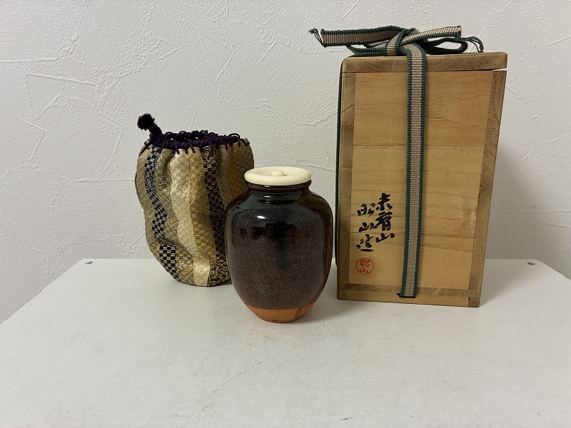 茶入 赤膚山 昭山造 仕覆 共箱ありです。