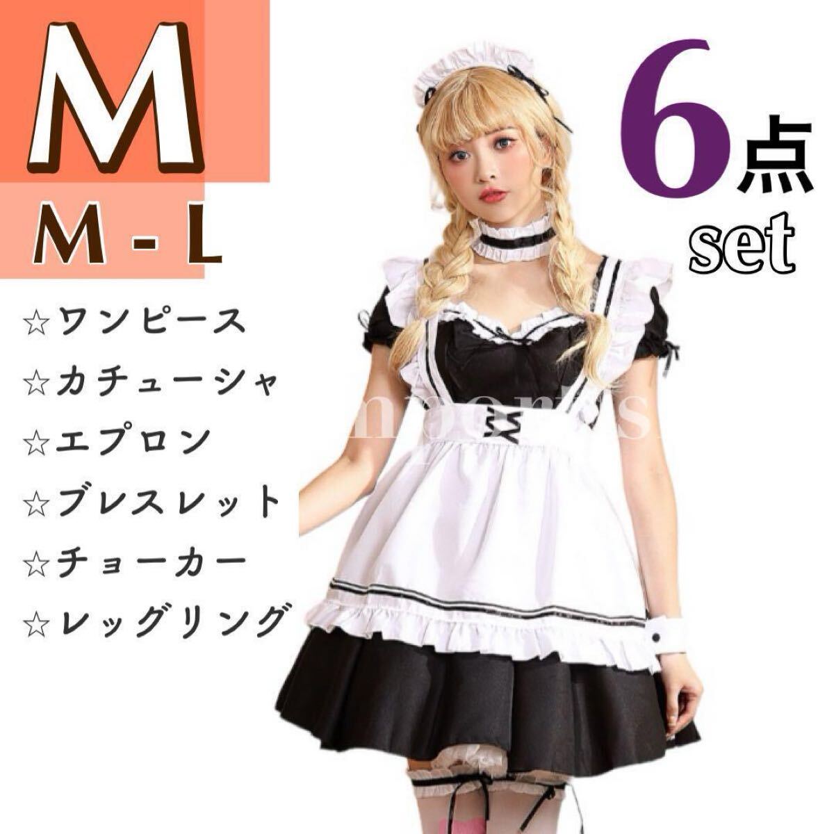 - コスプレ M メイド服 レディース 半袖 白黒 ミニスカート セクシー 学園祭 パーティー コンサート 小物セット お揃い 可愛い