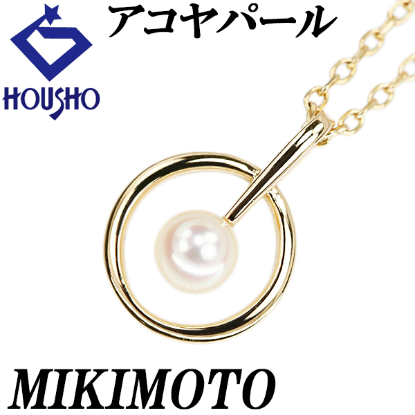 - ミキモト アコヤ真珠 ネックレス K14イエローゴールド MIKIMOTO 一粒パール 透かし サークル ラウンド 円 丸 送料無料 中古 宝正 902355