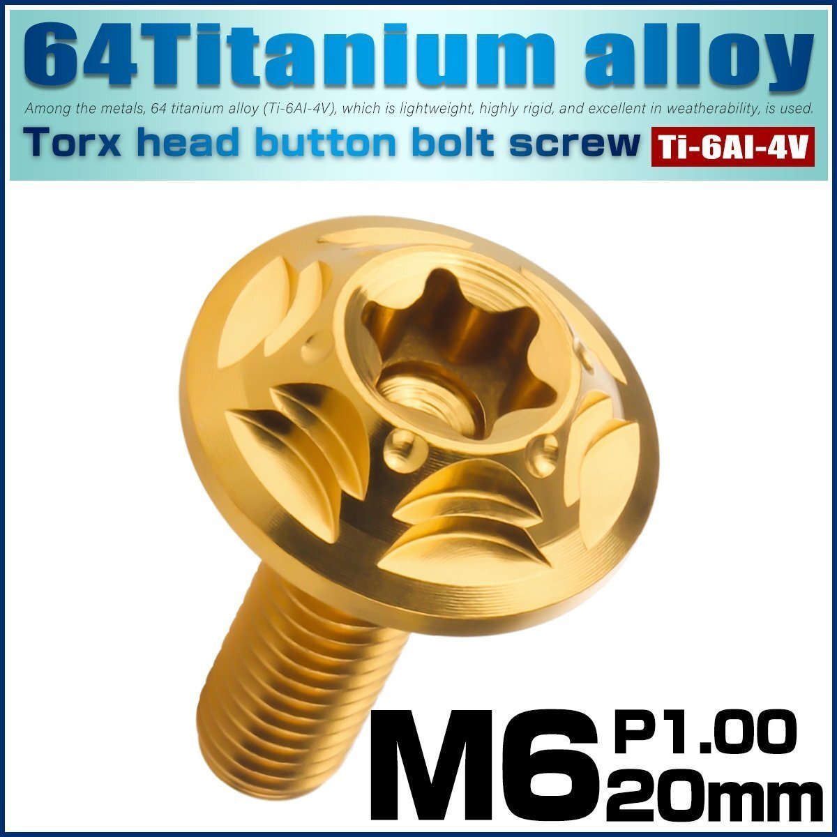 - チタンボルト M6×20mm P1.0 ボタンボルト スノーヘッド ホール デザインボルト トルクス穴 ゴールド JA1039