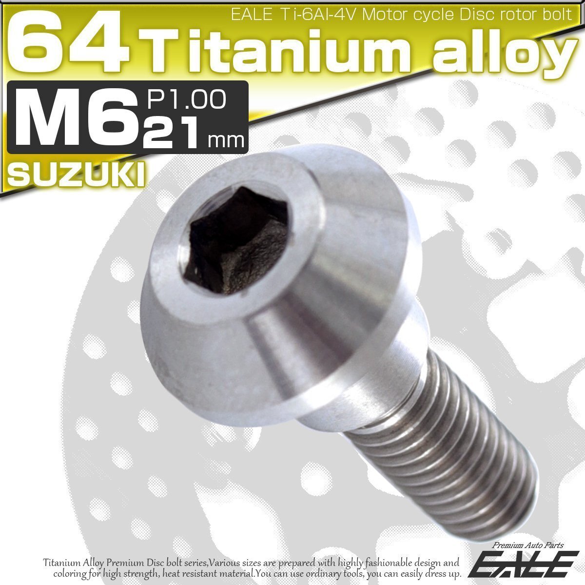 > 64チタン製 スズキ用 M6×21mm P1.0 ブレーキ ディスク ローター ボルト シルバー チタンボルト Ti6Al-4V JA227