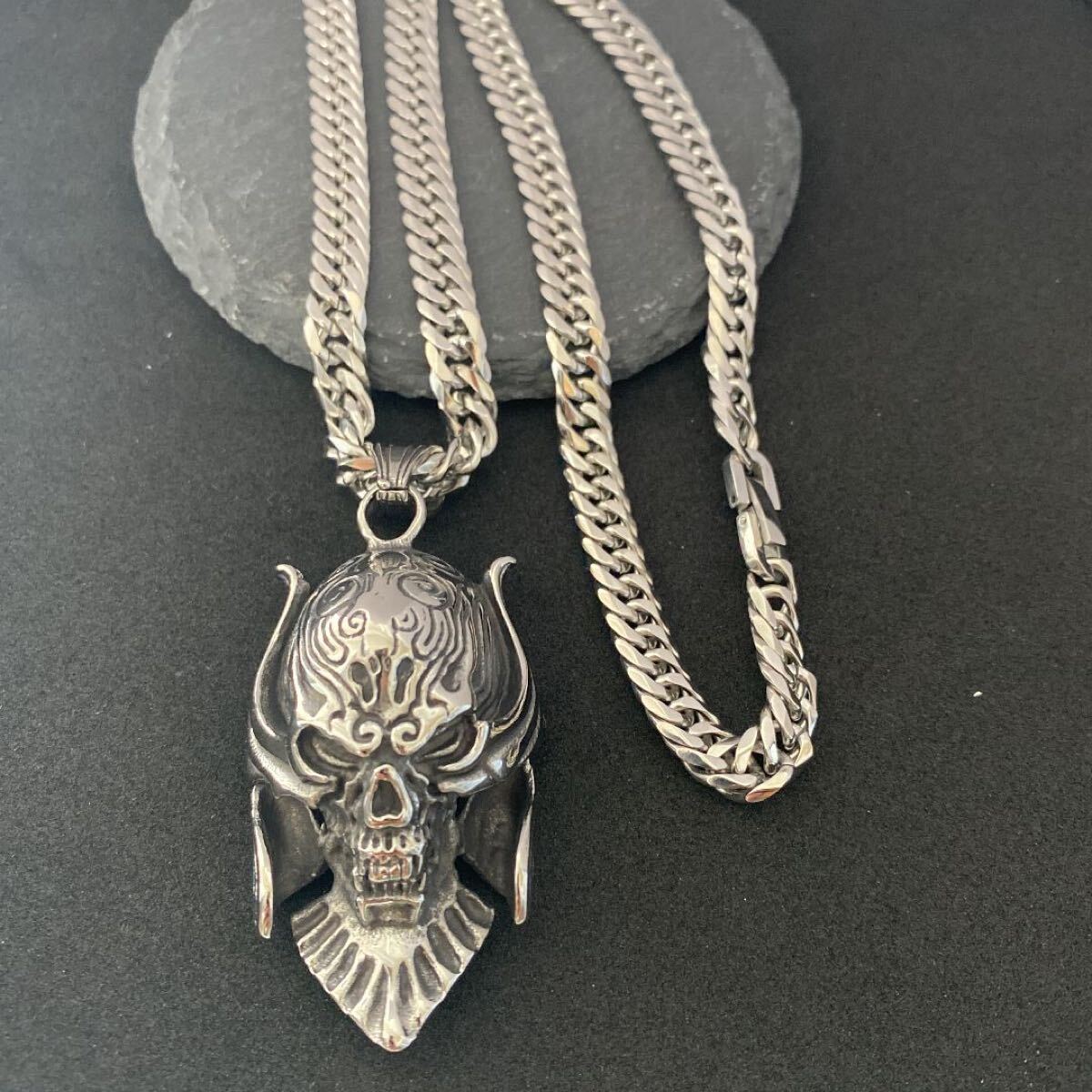 - 高品質ステンレス スカル ネックレス ダブル喜平チェーンネックレス
