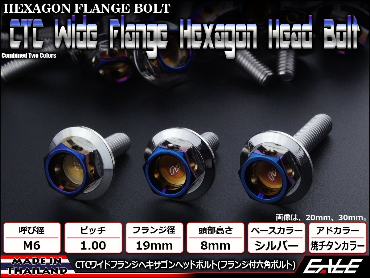 > M6×20mm 2色ワイドフランジヘキサゴンヘッドボルト フランジ付き六角ボルト ステンレス削り出し シルバー&焼チタンカラーTB0712