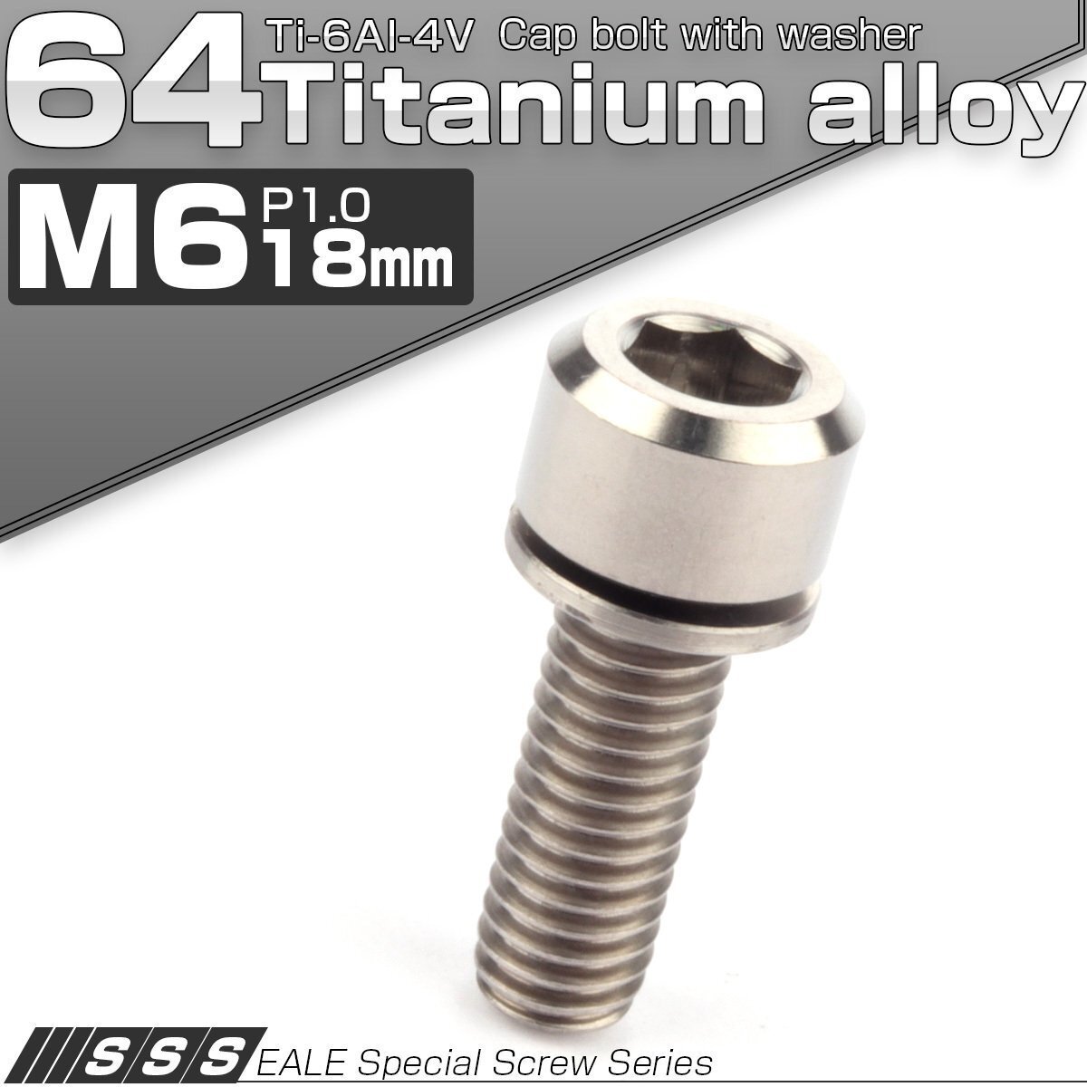 - 64チタンボルト M6 18mm P1.0 ワッシャー付き キャップボルト 平座金付き 六角穴付ボルト チタン原色 JA325