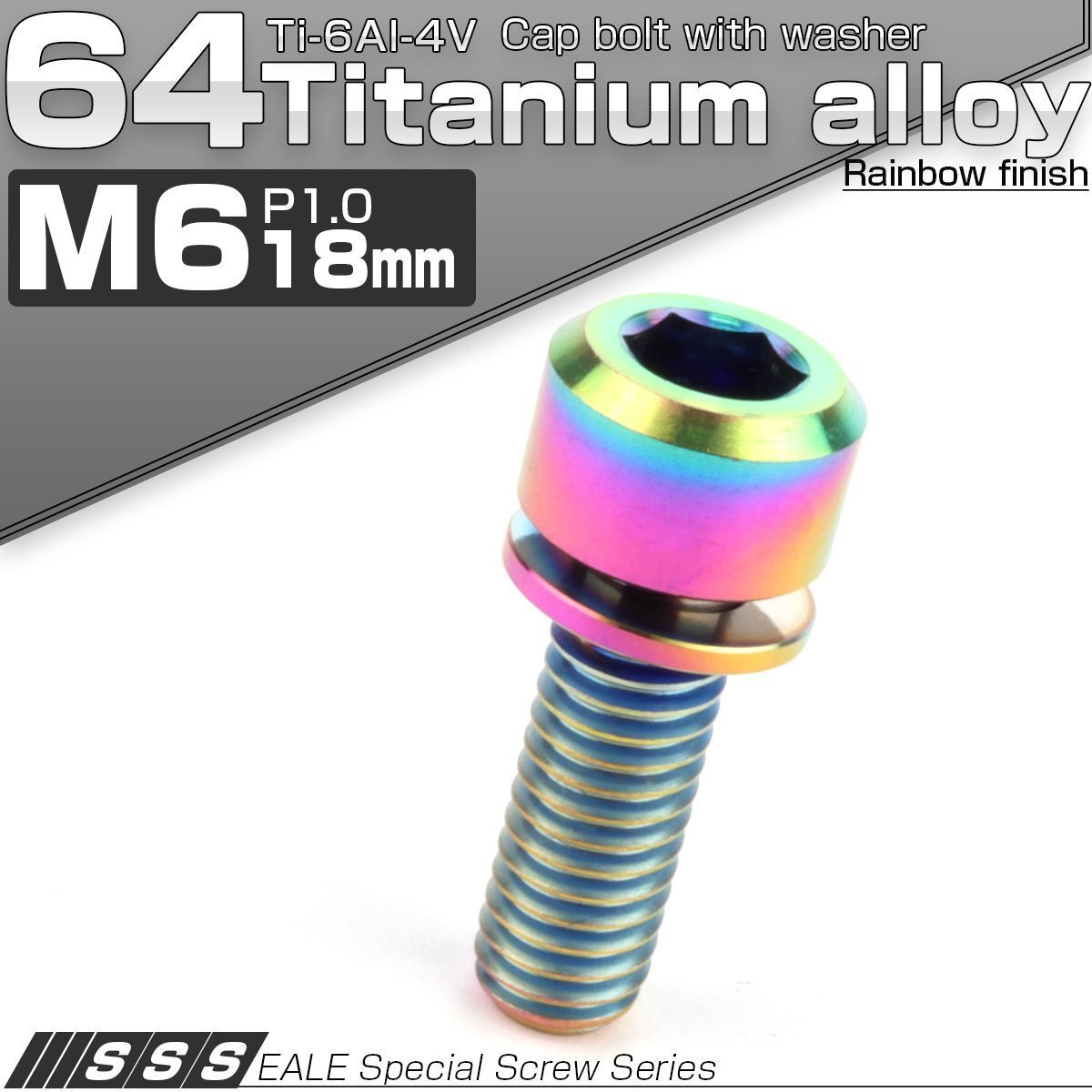 - 64チタンボルト M6 18mm P1.0 ワッシャー付き キャップボルト 平座金付き 六角穴付ボルト 虹色 焼きチタン色 JA326