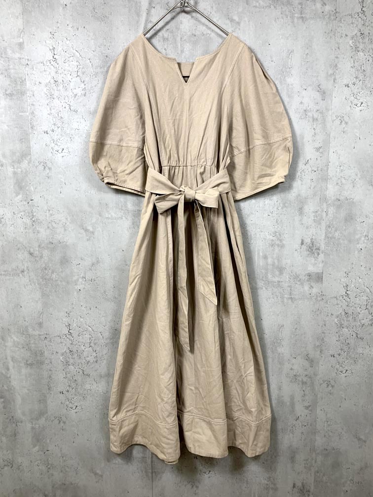 > natural couture ナチュラルクチュール 700450 定価6490円 ランタンスリーブ ワンピース sizeM/ベージュ ■■