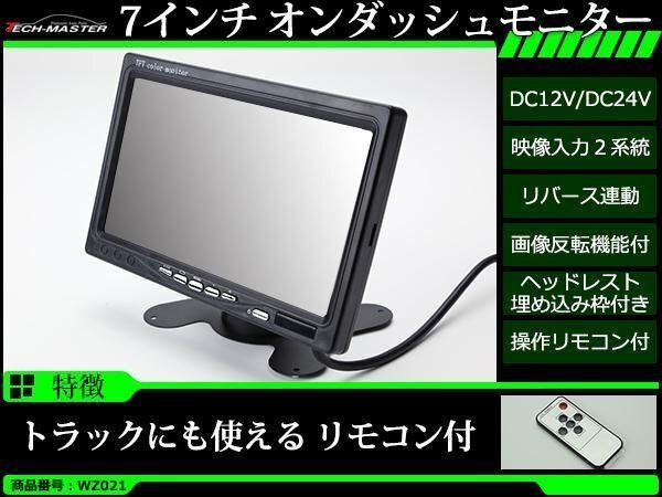 - 7インチ オンダッシュ 液晶モニター DC12V/DC24V リモコン切替 画像反転 リバース連動 ヘッドレスト埋込枠付 自動車/トラック/車載用 WZ021
