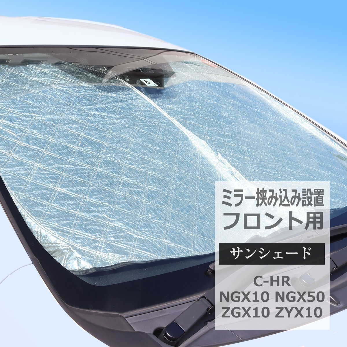 - C-HR サンシェード フロント用 ミラー挟み込みタイプ 厚手キルティング生地 日よけ NGX10 NGX50 ZGX10 ZYX10 ZYX11 SZ1208