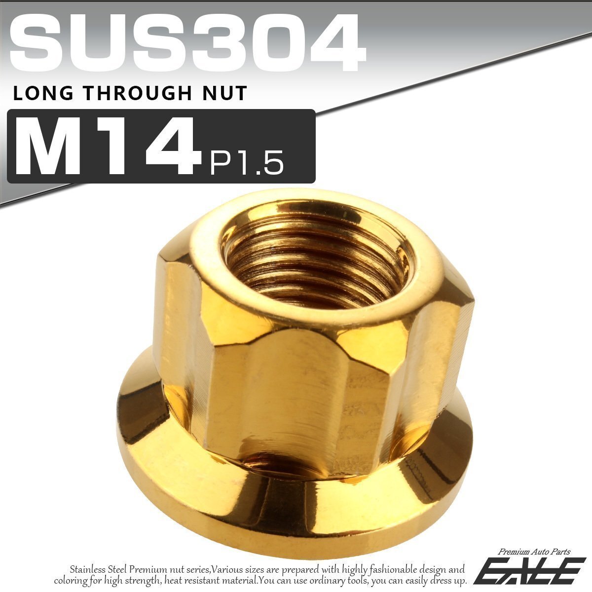 > ロング貫通ナット M14 P=1.5 ゴールド SUS304 ステンレス フランジ付 六角ナット 切削カスタムヘッド TF0062