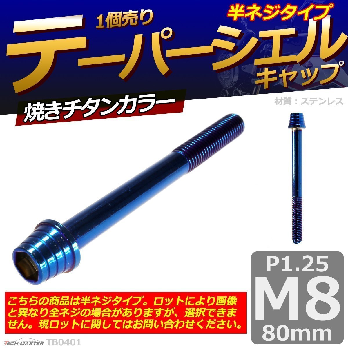 - M8×80mm P1.25 テーパーシェル キャップボルト ステンレス 車/バイク/自転車 ドレスアップ パーツ 焼きチタンカラー 1個 TB0401