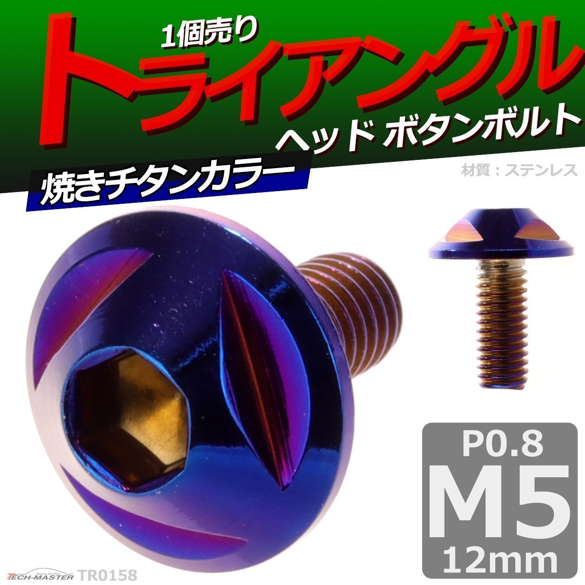 > M5×12mm P0.8 ボタンボルト トライアングルヘッド ステンレス 車/バイク/自転車 ドレスアップ パーツ 焼きチタンカラー 1個 TR0158