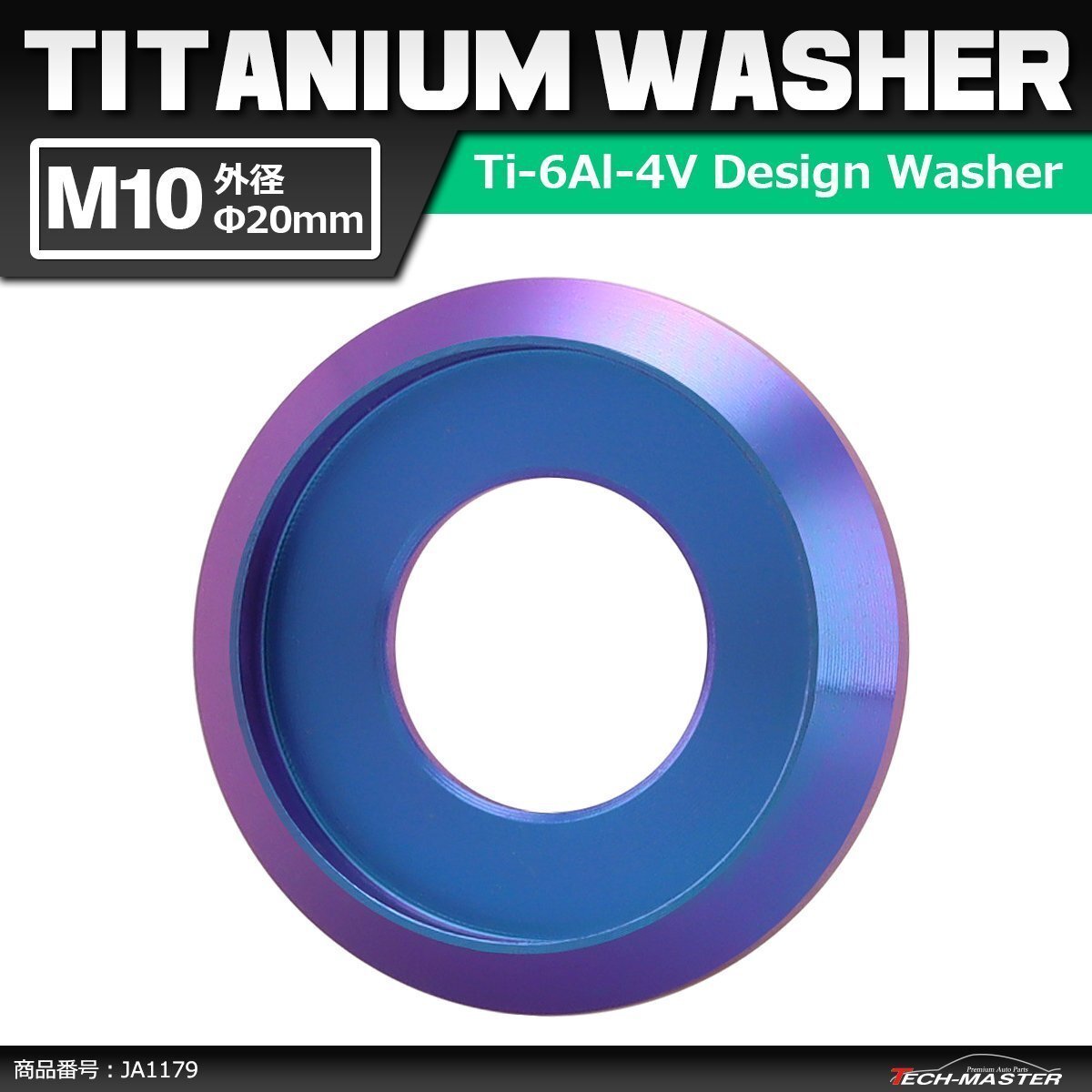 > M10 外径20mm 内径10mm 64チタン合金 デザインワッシャー ボルト座面枠付き パープルブルー 車/バイク ドレスアップ 1個 JA1179