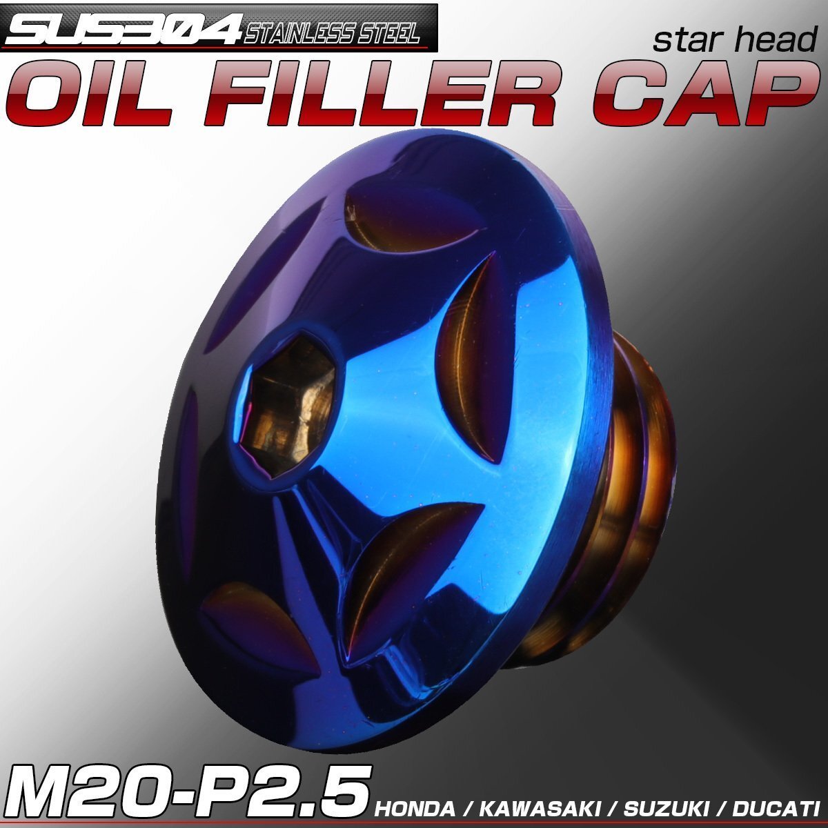 > 汎用 オイルフィラーキャップ M20 P2.5 スターヘッド 焼きチタン色 SUS304 ステンレス ホンダ ヤマハ カワサキ ドゥカティ等 TH0252