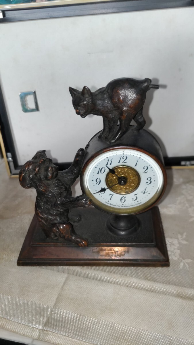 - 精工舎 大正時代 置き時計 ゼンマイ式 犬 イヌ 猫 ねこ ネコ SEIKO セイコー 日本製 アンティーク ビンテージ レトロ
