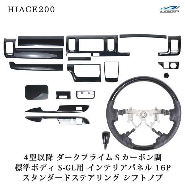 - ハイエース200系 4型 5型 6型 7型 8型 標準 S-GL ダークプライムSカーボン調 インテリアパネル16P スタンダード ステアリング シフトノブ