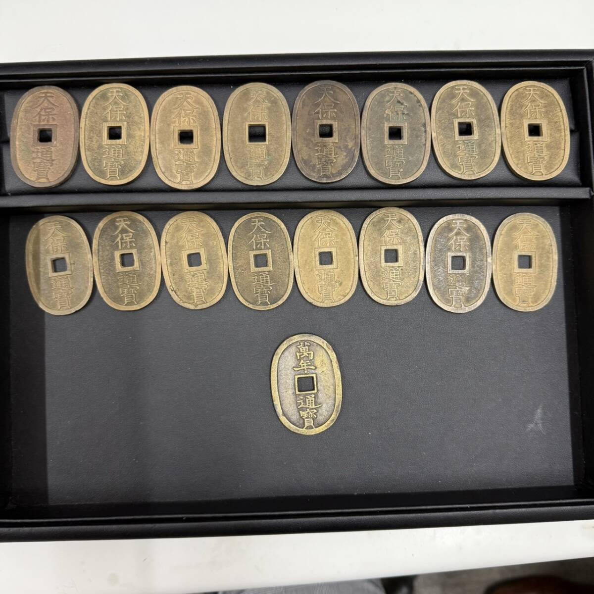 - #3614A 天保通宝16枚/萬年通宝1枚 穴銭 江戸 明治 小判型 當百 古銭 記念硬貨 日本貨幣 コイン コレクション アンティーク【鑑定未確認】