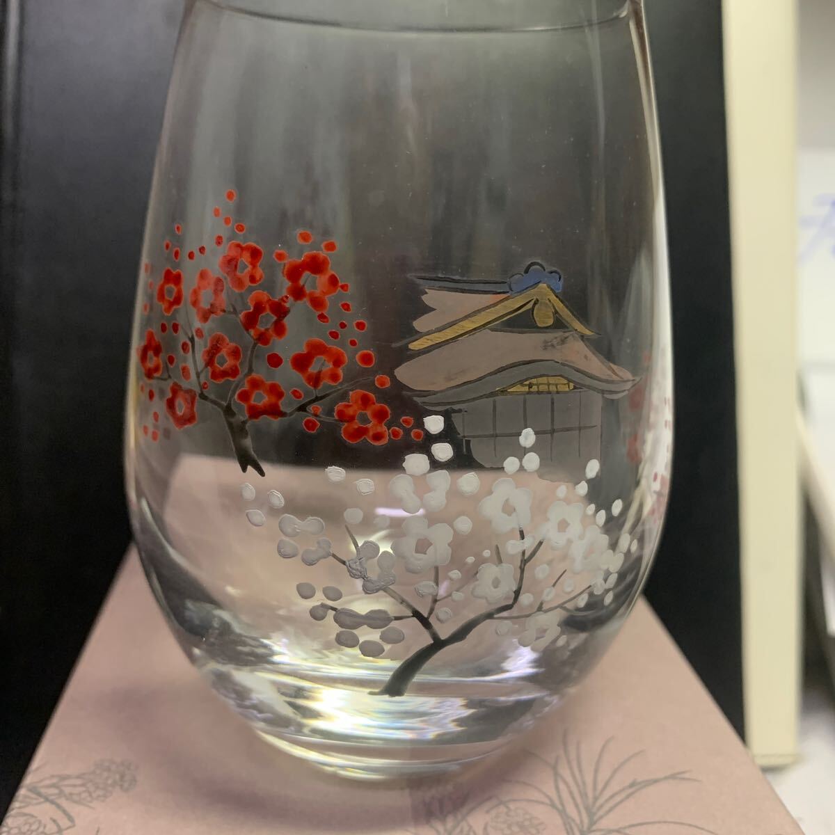 - 北野天満宮の梅 京都 山岡善昇 トップアート 古都の花暦 グラス ガラス器 タンブラー