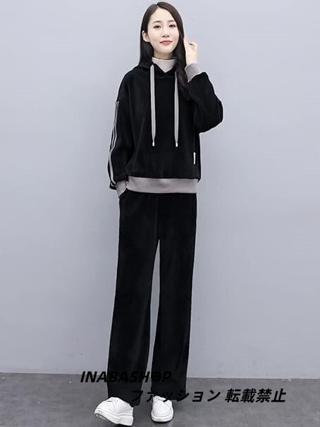 - 秋冬 2点セット ジャージ レディース パーカー スウェット フード スエット カジュアル スポーツ 部屋着 厚手 ゆったり カジュアル 韓国風