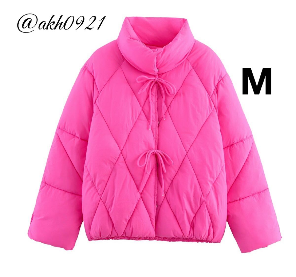 - 新品未使用★2025 A/W 秋新作★vintage ヴィンテージ レトロ pink ピンク ダウンコート アウター Mサイズ レディース★ZARA 好きな方に