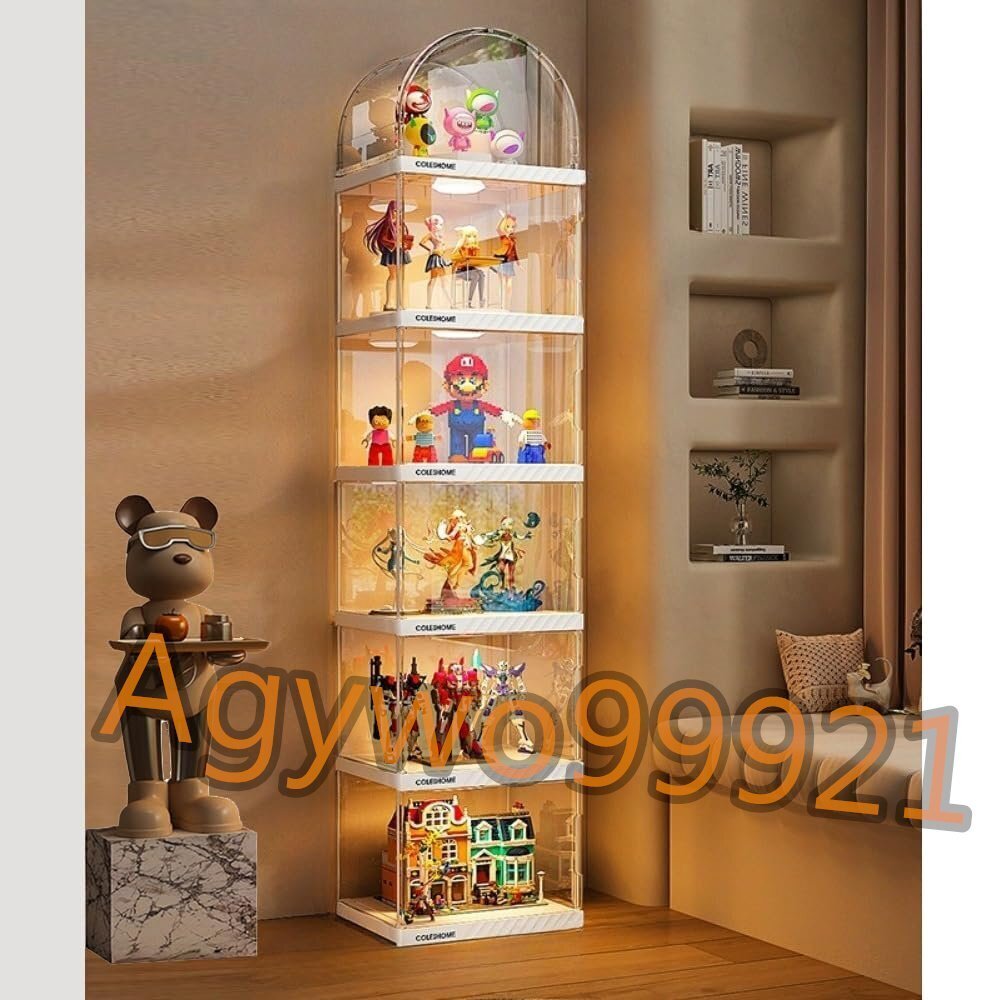 - ディスプレイケース フィギュア 棚 アーチ型天板 LEDライト付き 防塵収納ケース フィギュア・楽高展示用 磁吸ドア 幅40cm (6層-ホワイト)