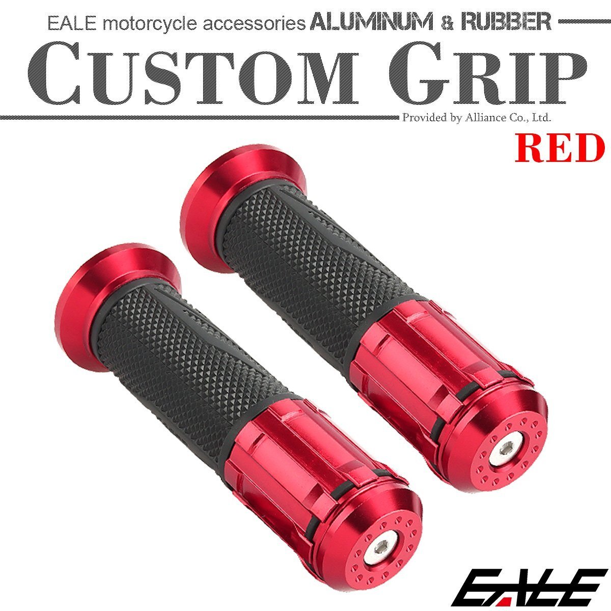 - バイク グリップ ハンドル アルミ ラバー バーエンド付き 22.2mm用 レッド 左右セット カスタム ドレスアップ S-245-R