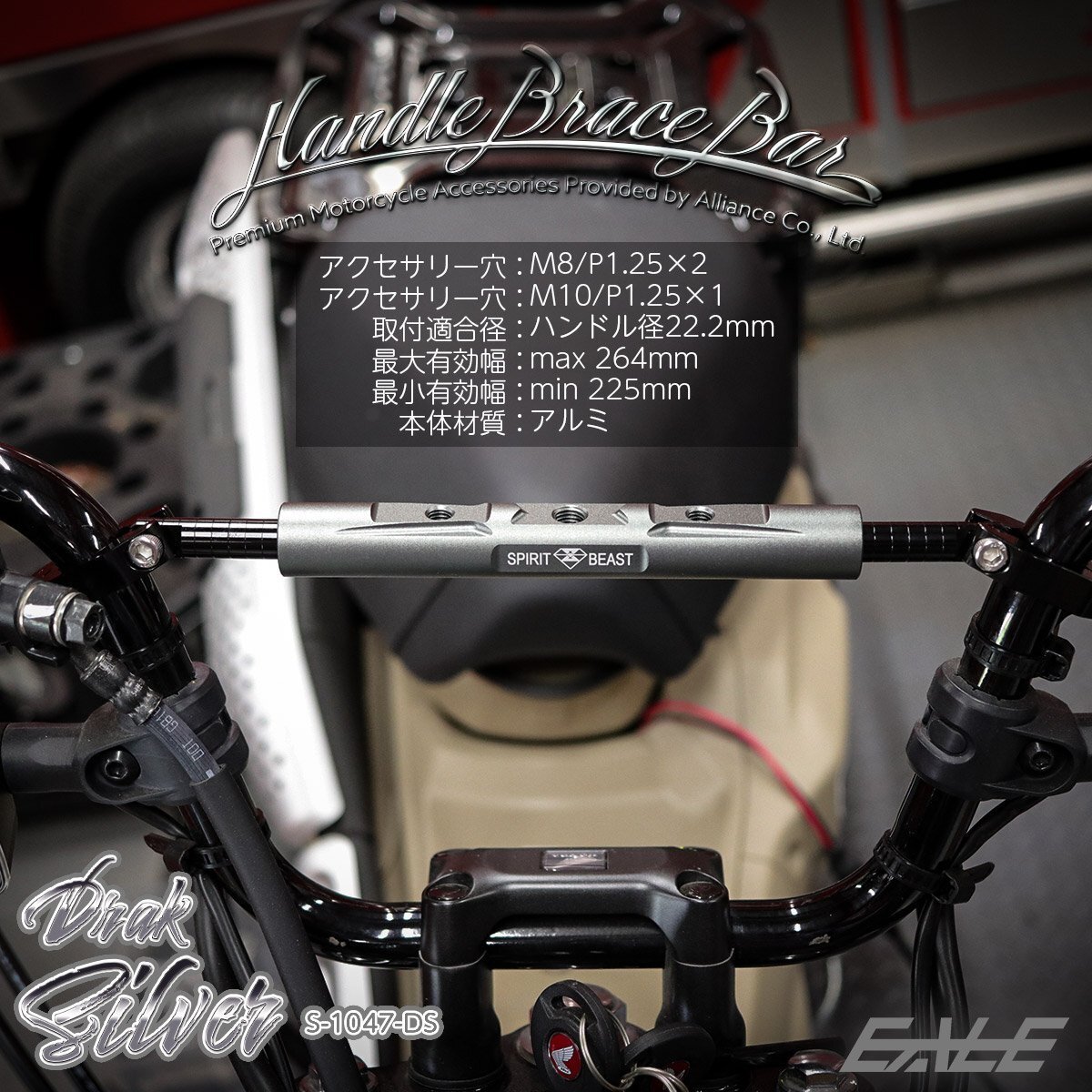 > ハンドル ブレースバー アルミ 22.2mm用 M8 M10 アクセサリー増設可 ダークシルバー S-1047-DS