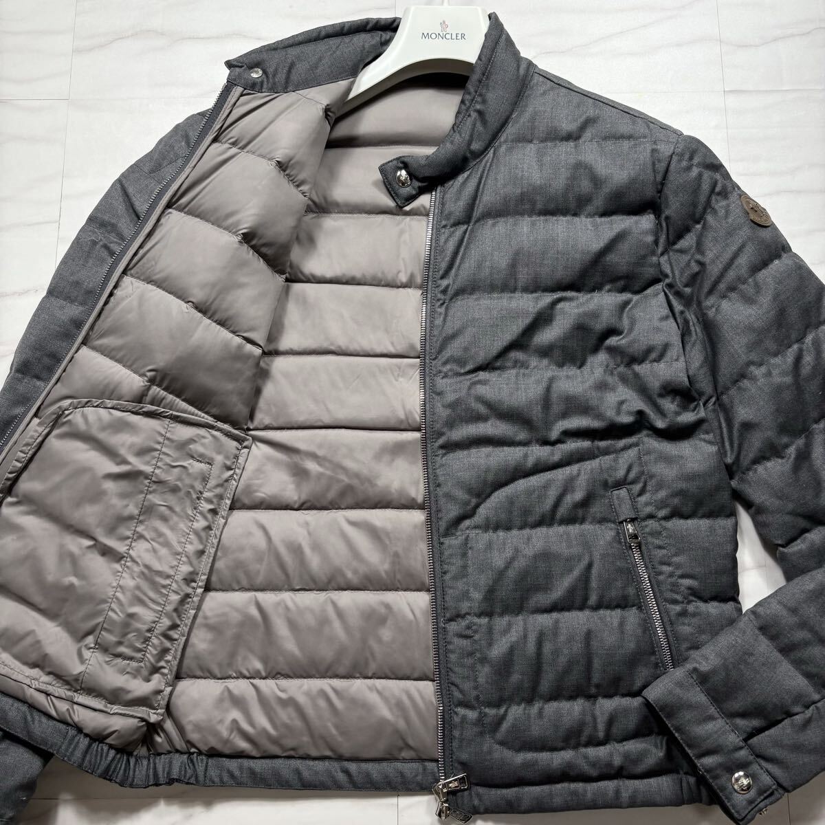 > 極美品/21AW◎MONCLER ACORUS ダウンジャケット ライトアウター ライダース レザーワッペン グレー モンクレール アコルス メンズ M