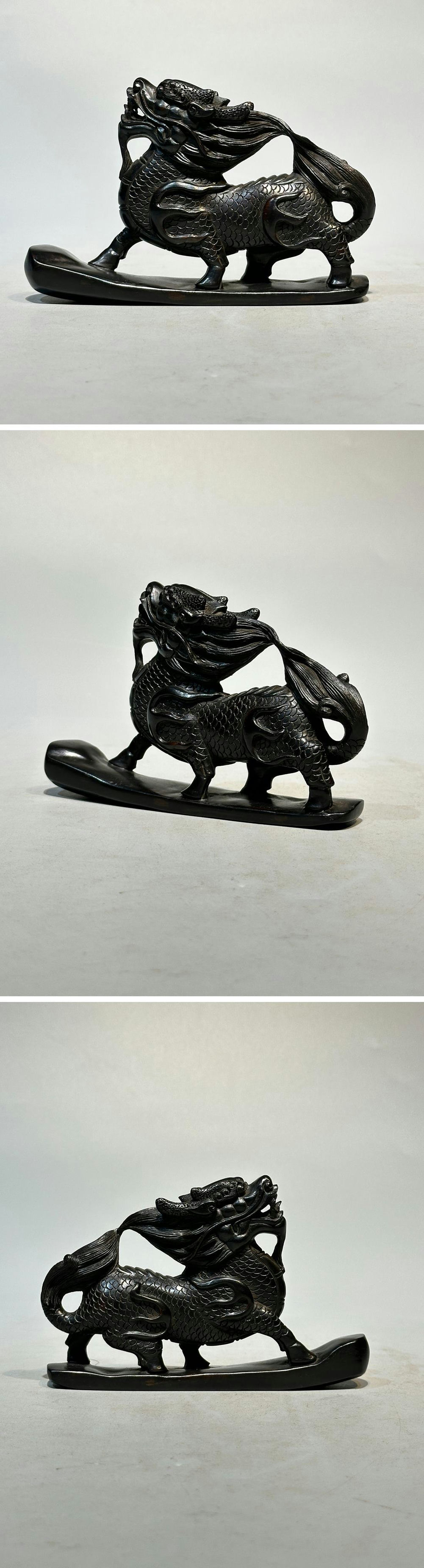 - ■観心・時代旧蔵■K0899清時代 小叶紫檀麒麟 小叶紫檀木細密細工★古置物★古賞物★古擺件★蒐集家放出★唐物