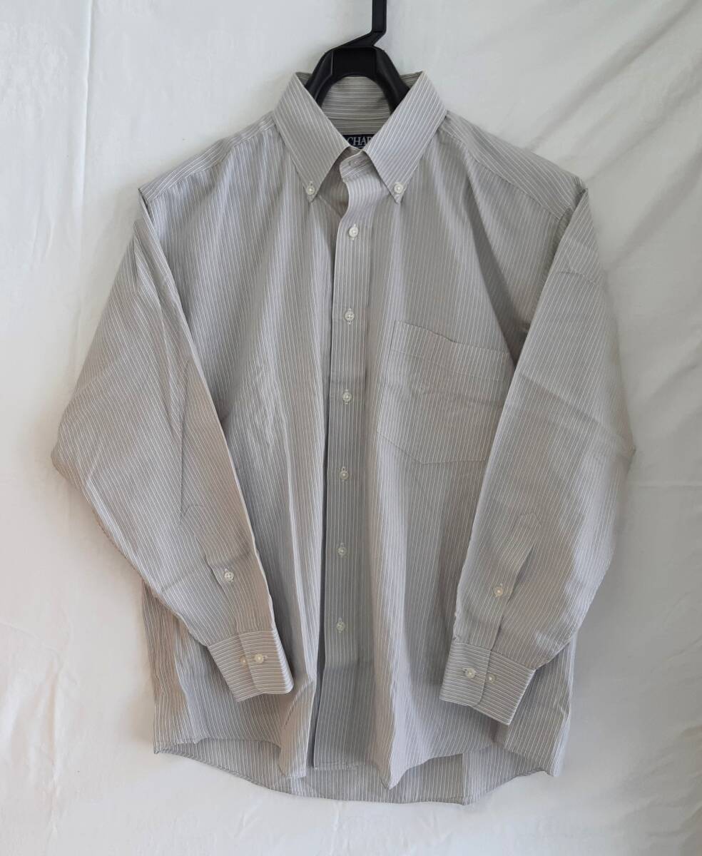 > 【菊水-424】E チャップス ラルフローレン CHAPS RALPH LAUREN/ストライプ ボタンダウン シャツ/長袖/グレー系/メンズ(SK)