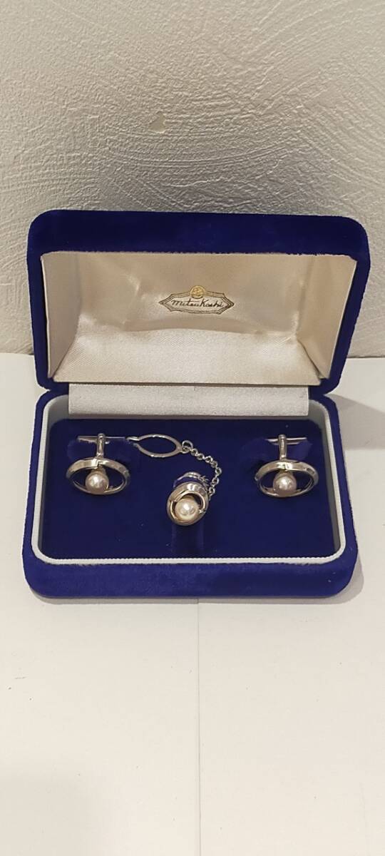 > MITSUKOSHI SILVER タイタック&カフス セット 真珠7mm玉 箱有 三越 シルバー 銀 ネクタイピン パール 71248