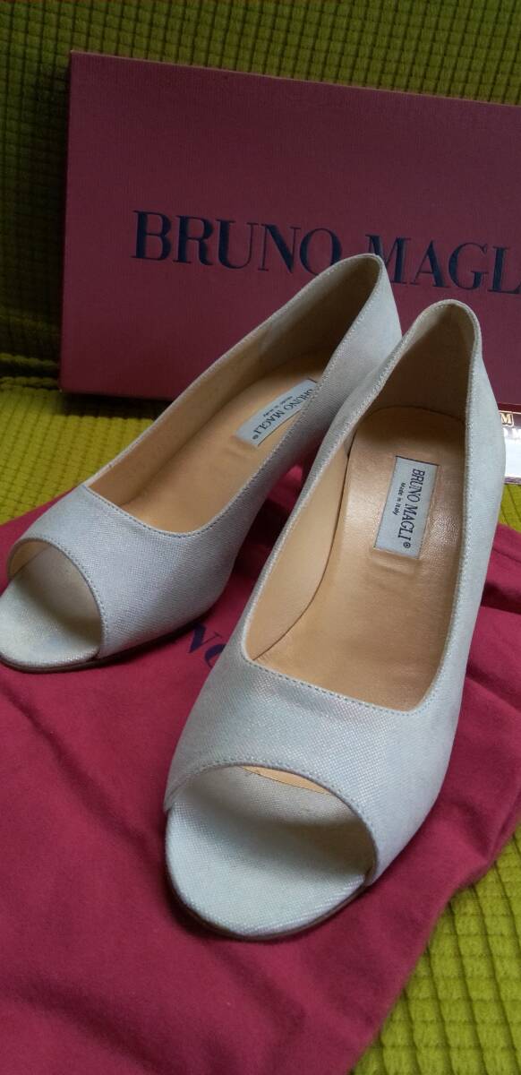 - BRUNO MAGLI ブルーノ マリ ヒール パンプス サイズ34 1/2 明るいグレー系ラメ